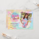 Looking for the perfect and coolest tie dye birthday party thank you card? Get this trendy hand painted tie dye pastel unicorn and rainbow, add your photo