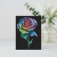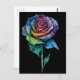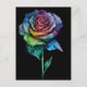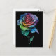 A stunning tie dye rose postcard. This colorful postcard features a single rose with multicoloured petals in a tie dye painting style creating a unique look that stands out on the black background. Perfect postcard to send to anyone who loves colorful and unique postcards.