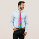 I bought this tie for a cosplay of Haruhi Fujioka for Halloween and anime conventions. It feels very nice and silky. It's my first tie ever, and I'm a pretty big fan since I always wanted a tie. It was longer than I expected it to be (quite a plus), but the purple stripe was also thinner than I expected it to be (a slight bit of a downer, but I don't mind too much). I had never used Zazzle before, but I am very impressed with the shipping time. I was looking for places to get a tie like this so last minute since the ties like this on Amazon were incompatible with Prime. Thus, I ended up here. I paid for express shipping, expected delivery October 30-31, and it arrived in the morning on the 30th. Very impressed. I might just use Zazzle again. The print job was okay. The colors were perfect, but as you can see in the pictures, the stripe was a little off-center, and there was a kink in the stripe around where it transitions from the wide end to the thin end. It should work perfectly for my cosplay, but it was a little too carelessly print to be a very professional tie.