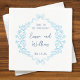 Add a sweet touch to your special event with these elegant custom wedding napkins, featuring a delicate bow and floral wreath design in timeless blue. Perfect for weddings, engagement parties, and rehearsal dinners. Customize with your names and date to add a personal touch that guests will love. The soft blue hues and intricate details of this design blend classic romance with modern elegance, making it a chic addition to your wedding decor. Whether for cocktail hour or reception, these napkins add a touch of refined charm to your celebration.