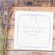 Add a touch of romantic charm to your wedding with these customizable lavender napkins. Featuring a delicate bow design and the phrase "Time to Tie the Knot," these napkins perfectly blend elegance and style, making them an ideal choice for any wedding theme, from classic to modern. The soft lavender hue brings a sense of tranquility and grace to your décor, creating a serene atmosphere for your celebration. Personalize these napkins with your names and wedding date.