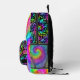 This groovy backpack includes a colorful tie-dyed swirly pattern in a bright rainbow of colors. The pocket and the top of the backpack have a matching floral tie-dye pattern on black. Add your custom monogram to the pocket. It's a fun design with a retro aesthetic for hippies who dig the far-out, psychedelic vibe of the 1960s and 70s bohemians. Use the easy template to personalize.
