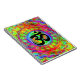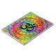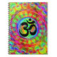 A funky, colorful kaleidoscopic fractal with a black om symbol.