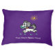 A Large, Dark Purple, (Indoor Fabric), Dog Bed, with a Drawing of a Cartoon dog, Tiffany and her Frisbee, = (Art by P.J.M.), with an option to Customize, in White Color Text, ="Your Dog's Name here!"
