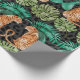 Tiger and Leaves in Watercolor Seamless Pattern Wrapping Paper