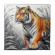 Tiger Art Color Partial Black White Drawing Ceramic Tile