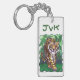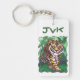 Love tigers, then you'll love your own initialed Animal Parade Cute Tiger Keychain featuring our original art of a cute orange, black and white stripped tiger character standing in a shady green jungle with a yellow, green textured sky painted by our talented children’s illustrator, Traci Van Wagoner. Our cute wild animal designs make great gifts for tiger lovers, wild animal lovers, and fun animal art lovers of all ages. Get one for yourself or a friend today! Roar!