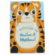Cute tiger cartoon baby shower design is great for a safari party for a new baby boy on the way in blue! Also great for zoo and circus themes!