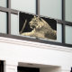 TIGER IS AT REST. THE BANNER HAS BUILT IN GROMMETS. EXTREMELY EASY TO INSTALL. PERFECT FOR PEOPLE WHO RENT.