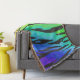 A quality printed throw has its advantages. This is a much finer weave throw than its loopier cousins, and though lighter, it is worth the investment for custom room accessorizing. The back is much prettier than the typical brown, and the fringe on the long sides very vivid, the selvage nicely done. Before photographing, I washed the throw in cold water, delicate, with a thicker woven throw the same size. On tumble dry low, this throw was dry in half the time as the other. This is a very practical quality if you use throws for furniture covers or to wrap up in frequently. The sleekness of the fabric makes it a great layer for accenting or protecting without the feeling of sitting on too much stuff. Perfect for napping or when you feel a light chill coming on. The color printing is beautiful and on this fabric, matched the design and color of my Photoshop image. This is an advantage for blending room fabrics and colors. The fringe on the short sides prints the colors from the design image and therefore varies from the side fringe. I streaked a white fractal line through the plaid pattern to give the illusion of weaving. This printed as crisp as an illusory thread, and put some white in the short side fringe, showing another advantage of print vs loomed- for artistic purposes, line lines, detail, and color integrity can be planned and preserved. My loomed throws have color limitations and more of a needlepoint texture. Print throws reproduce an exact image. The throw felt a little stiff straight out of the package, but this went away in the first delicate wash. Of course I searched the wash water for ink or bleeding and there was none.