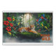 The backdrop is a lush tropical jungle, teeming with vibrant green foliage and exotic flowers such as hibiscus and orchids, their rich colors creating an inviting yet wild atmosphere. Creeping vines intertwine with the dense vegetation, adding intricate details to the composition.
