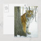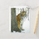 Tiger Cub In Snow Peeking Around Tree Postcard