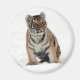 Beautiful portrait photograph of a tiger cub in the snow with snow on his/her nose.
