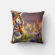 Tiger Cub, Purple Flowers Throw Pillow