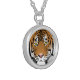 I chose gold plated so that the metal would not react with my skin oils and perspiration. But, I changed the necklace from the gold plated one to a sterling silver. My skin cells will tarnish the silver. But it will not look as bad if some portion of the gold plated necklace somehow became compromised. Zazzle did a find job turning the picture into a pendant for me. As you can see, the colors and the printing of the final product, match the preview. The picture I took is not very clear. But I am pleased with the product I received.