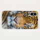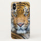 This phone case features a close up of a tiger's face, where the tiger is looking directly at you and his orange and black striped markings are shown in great vibrancy and detail. Easy to transfer to other phone models. Fun item for animal and wildlife lovers. Photo taken in San Diego, California.