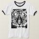 Pop Art Tiger Face Elegant Modern Template Basic Ringer Black & White T-Shirt.