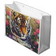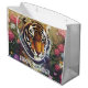 Enhance your gift giving with this custom tiger text gift bag. Features tiger flower design with "Happy Birthday." Change the text to fit your needs. Earthy colors. Custom tiger flower design. Use the template to personalize.
