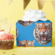 Seamless Repeat Roaring Tiger Head Pattern Design On Blue Background