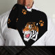 Tiger head design with paw prints on black necktie. This is also available with a white background.