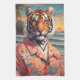 Funny Tiger wearing a Hawaiian shirt on a beautiful beach.