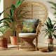 A fine art Throw pillow with the oil painting by Henri Rousseau (1844-1910), Tiger in a Tropical Storm or Surprise (1891). A masterpiece of Naive style art. His first foray into the mesmerizing world of jungle landscapes. A rainy day in the jungle, where every brushstroke brings to life the untamed wilderness. The tiger, rendered with a sense of both majesty and mystery, prowls through the tall grass, creating an atmosphere of suspense and awe.