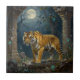 Tiger in Ancient Dunes under the Full Moon Ceramic Tile