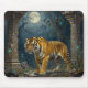 Tiger themed mousepad with a majestic impasto illustration of a golden tiger walking through the ancient dunes, full moon up in the sky shining down on the tiger's golden fur.