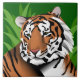Up close tiger in green jungle portrait, design made in a vector graphics program