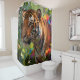 A beautiful tiger stands in a green jungle, rendered in splash art, makes a beautiful wildlife-themed shower curtain. Modern art style, perfect for anyone who loves big cats, animals, and nature.