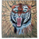 The painting depicts a tiger in waiting. The tiger is waiting for a convenient moment to attack. The graphic looks spectacular on a shower curtain.