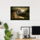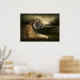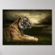 Tiger looking and sitting under dramatic sky poster