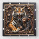 Tiger Monkey Close Up Portrait Square Wall Clock