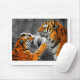 mouse pad has a picture of two tigers showing affection.