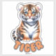 Its fluffy tail curls to the side, adding a touch of personality to the design. Below the tiger cub, the word "TIGER" is displayed in bold, orange bubble letters outlined in black, giving the sticker a fun, kid-friendly vibe that will brighten any space.