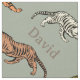 Earthy colored printed fabric by the yard. The fabric is decorated with a tiger pattern with a custom name placed in different positions and with slight color variations. Nice material for a boy's room crafting project, a sewing project or another creative project for and by a wild cat lover.