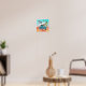 Modern Collage Wall Art. This one is vintage retro icons with vintage airplane and blue car, with tiger, cactus, desert, planet, parrot and flowers. Colors of oranges, blues and peach. Fun, mod and eclectic ephemera. This is a flat surface with a smooth canvas finish. Fun, surreal art using a mix of collage and digital art techniques, with a vintage, mid-century retro feel.