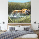 Tiger Splashing through the marsh Triptych Acrylic Canvas Print
