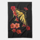 Tiger Swallowtail Butterfly on Red Flowers Kitchen Towel