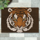 Beautiful minimalistic abstract vector art of a tiger head facing forward in bold colors.