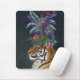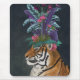 Hot House Tiger 2 by Fab Funky. A tiger rests with tropical flowers and greenery atop its head like a headpiece.| 192437GG