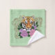 Tiger portrait with pink and light purple flowers. Henna all around the tiger in a backdrop of green.
