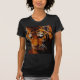 My overall review is that the T-shirt is nice, it fits true to size however the font is significantly smaller than advertised and you can't read it. The printing is unreadable and there is a strain to read it. It does not look like the advertised product. Maybe the shirt color is darker or a larger more visible font should have been used. Photos with and without flash and font is barely legible.