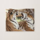 Game puzzle shown with a photo print of beautiful tigers. Customize this item or buy as is. Stock Image