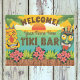Tiki Bar Welcome with Mask Sunset Add Name Doormat