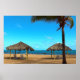 Photo of tiki huts and blue water of the Caribbean at St. Croix in the US Virgin Islands.