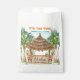 Tropical luau theme favor bags feature a watercolor Tiki bar on the beach (complete with a parrot and cocktails) framed by palm trees and Tiki torches, with "Aloha" and "It's Tiki Time" captions in island style fonts. Although shown here as for a couples shower, the text can be personalized to suit the occasion and would work for a baby shower, bridal shower, wedding reception, birthday, anniversary, etc.