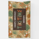 Tiki party theme birthday banner features a rustic wood sign in the center with "Tiki Time" typography and "Happy Birthday" with a personalized name bordered by Tiki totems, pineapples, hibiscus flowers, palm and monstera leaves. Perfect for tropical, luau and beach theme birthday parties.