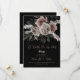 Darkly beautiful floral arrangement with roses, leaves, thorns and horns make your save the date announcement stand out. Hand lettered script calligraphy typography says 'Til Death Do Us Part and adds to the elegant look. Perfect for a gothic wedding or Halloween save the date announcement. See coordinating items in our shop, Enchanted Finch.