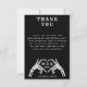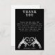 White and black til death do us part wedding thank you card with skeleton heart hand and name monogram. Personalize it with your event details. Great for a gothic or Halloween wedding.